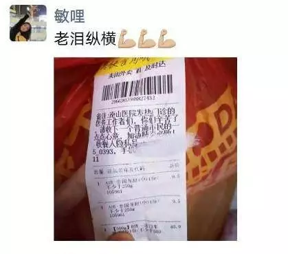 1月30日晚上8點(diǎn)56分,華中科技大學(xué)協(xié)和深圳醫(yī)院(南山醫(yī)院)手外科護(hù)士王敏在朋友圈曬了一張照片,照片里是一個(gè)紅色塑料袋上貼著一張外賣單,備注上寫著,“南山醫(yī)院發(fā)熱門診的醫(yī)務(wù)工作者們,你們辛苦了!請(qǐng)收下一個(gè)普通市民的一點(diǎn)點(diǎn)心意,加油,肺炎必?cái)。 ?/p>