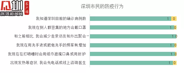 2020年2月9日-11日,深圳疾病預(yù)防控制中心聯(lián)合深圳大學(xué)傳播學(xué)院開(kāi)展了《深圳市民新冠肺炎調(diào)查》。在三天時(shí)間內(nèi)共回收到8179份有效答卷。結(jié)果顯示,深圳市民對(duì)于新冠肺炎知識(shí)的了解程度達(dá)到了較高水平。近8成受訪市民對(duì)疫情發(fā)展持積極態(tài)度,超9成受訪市民能做好自我防護(hù),對(duì)于病原、疾病的典型癥狀、傳染源特征、洗手的有效預(yù)防性,以及高危人群特征也均超過(guò)了95%。