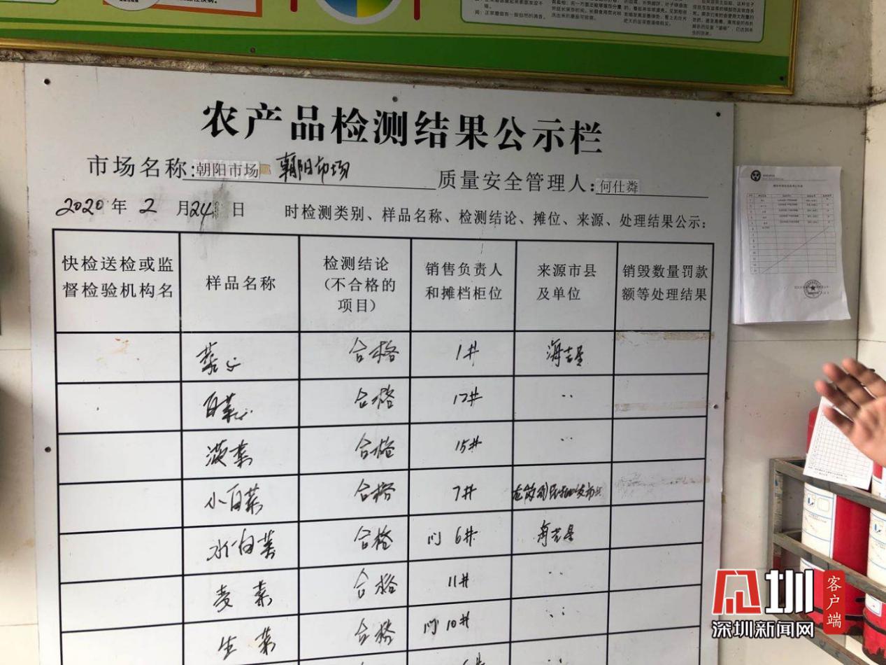 “朝陽肉菜市場從2005年開始開辦,市場占地面積為2480平方米,建筑面積和經(jīng)營面積均為2220平方米,目前市場經(jīng)營攤檔共有82檔。市場附近有三個(gè)社區(qū),每天有將近兩萬居民都會(huì)來這個(gè)市場采購食材。市場設(shè)有農(nóng)殘檢測設(shè)施,每天都會(huì)對進(jìn)貨的蔬菜進(jìn)行農(nóng)殘檢測并公示?!笔袌鲐?fù)責(zé)人說道。