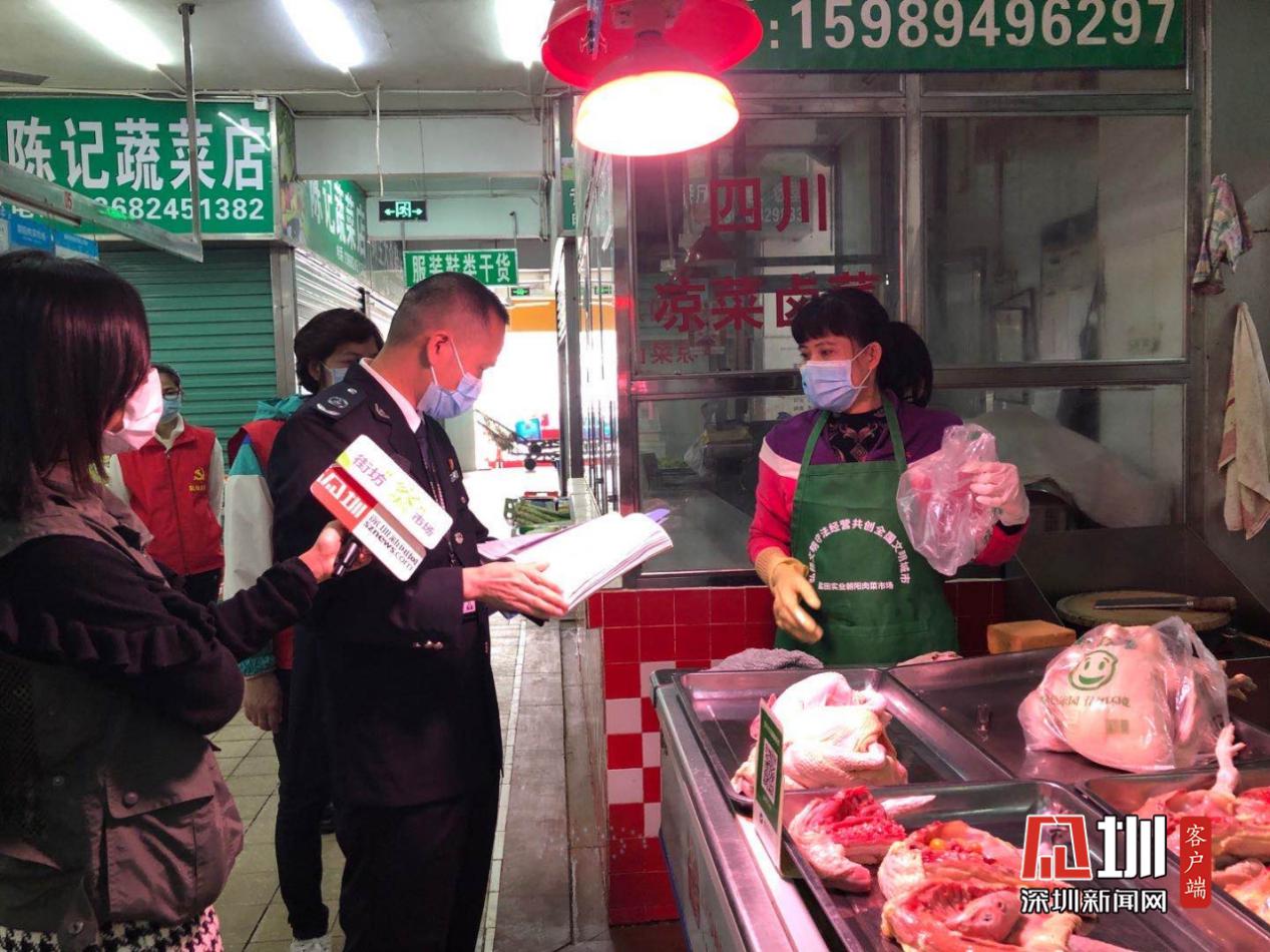 深圳市市場監(jiān)管局鹽田所執(zhí)法人員藍(lán)華榮表示,朝陽肉菜市場是從年初二開始營業(yè)的,鹽田所從年初二開始,每天都會(huì)對這個(gè)市場進(jìn)行檢查。目前除了日常檢查之外,還會(huì)對市場的防疫防控工作進(jìn)行檢查?!耙咔槠陂g主要檢查市場是否有售賣野味和商戶是否有佩戴口罩,當(dāng)?shù)谝淮伟l(fā)現(xiàn)商戶沒有戴口罩時(shí),執(zhí)法人員會(huì)發(fā)放一份責(zé)令改正通知書給商戶,第二次還被發(fā)現(xiàn)沒有戴口罩的話,市監(jiān)部門將通知公安部門。”執(zhí)法人員介紹道。
