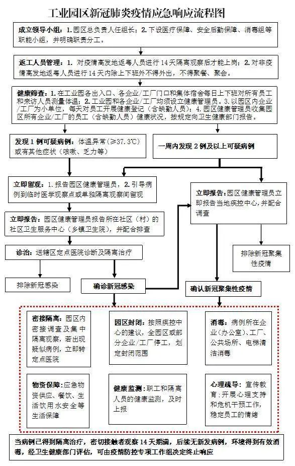 二、實(shí)施應(yīng)急措施。如出現(xiàn)感染病例(含確診病例、臨床診斷病例、疑似病例)和無(wú)癥狀感染者時(shí),應(yīng)按照政府部門(mén)要求啟動(dòng)新冠肺炎應(yīng)急預(yù)案應(yīng)急響應(yīng),具體做法看這里
