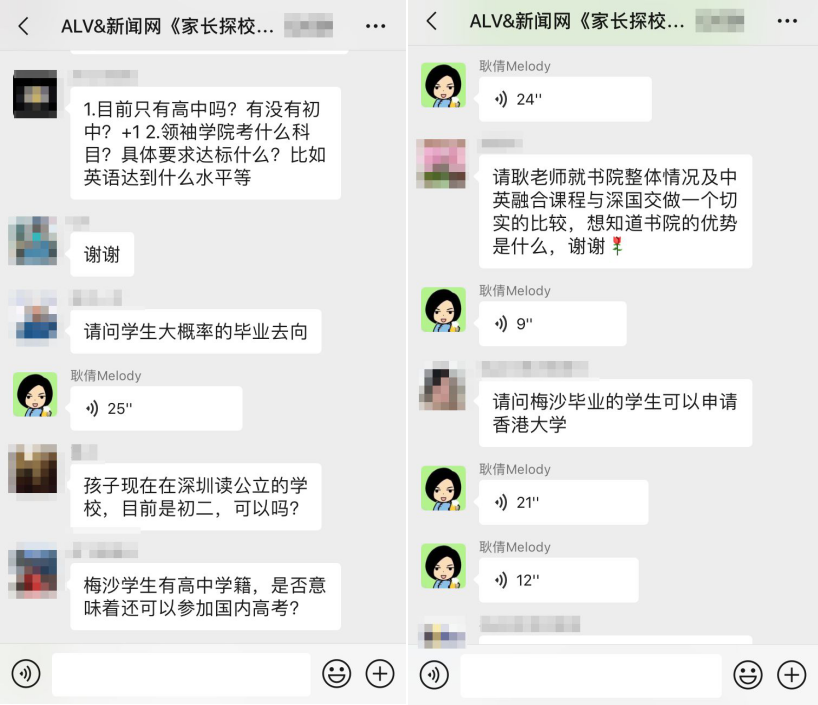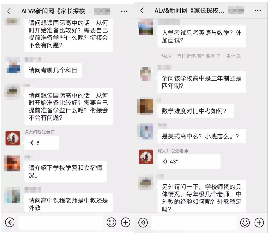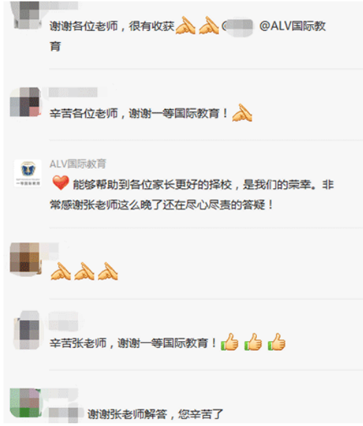 據(jù)介紹,在這三場(chǎng)探?;顒?dòng)中,招生官耐心而又細(xì)致的逐一為家長(zhǎng)答疑解惑,贏得家長(zhǎng)對(duì)本次活動(dòng)的高度認(rèn)可。以下為“家長(zhǎng)探校團(tuán)”微信群內(nèi)互動(dòng)截圖: