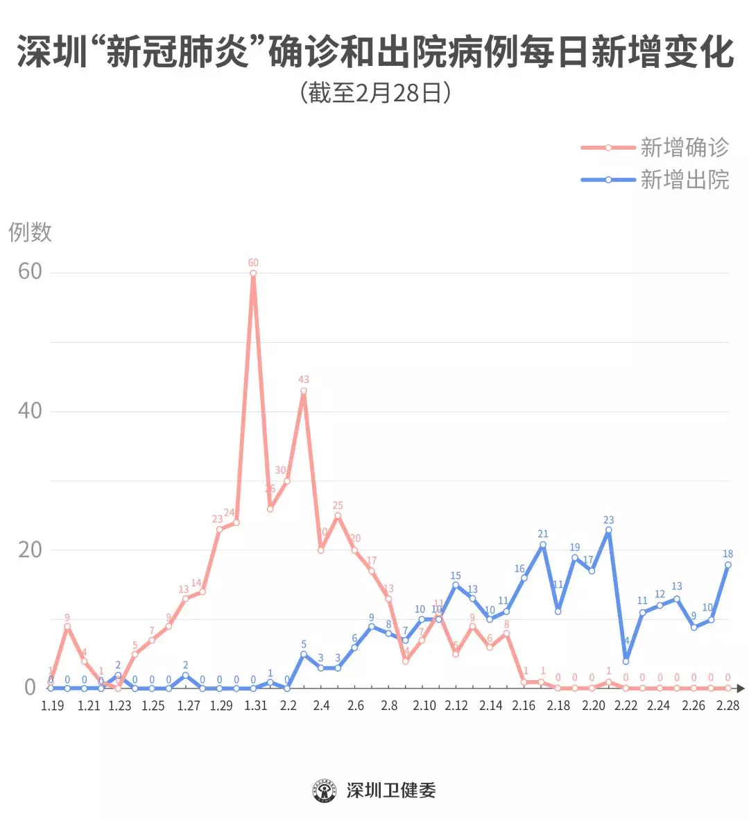截至2月28日24時,深圳累計報告“新冠肺炎”確診病例417例。2月28日當天全市無新增確診病例,當天出院病例18例(從26日起不再公布出院個案)。