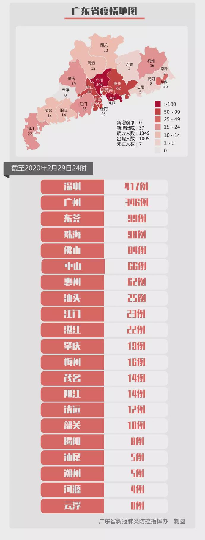 截至2月29日24時(shí),全省累計(jì)報(bào)告新冠肺炎確診病例1349例,累計(jì)出院1009例,累計(jì)死亡7例。29日當(dāng)天全省無新增確診病例。新增出院37例,11例為重型病例治愈出院,其余為普通型或輕型病例治愈出院。有疑似病例1例。有931名密切接觸者正在接受醫(yī)學(xué)觀察。