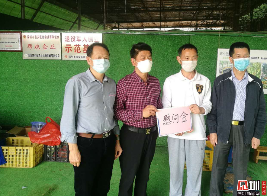 2月22日下午,寶安區(qū)退役軍人事務(wù)局局長(zhǎng)劉偉、 寶安 區(qū)社會(huì)擁軍聯(lián)誼會(huì)會(huì)長(zhǎng)李新華, 以及匯駿豐資產(chǎn)管理有限公司黨支部代表等人 , 專門驅(qū)車前往深圳市中樺農(nóng)業(yè)科研發(fā)展有限公司位于寶安區(qū)燕羅街道的蔬菜基地,慰問該公司員工并送上慰問金。
