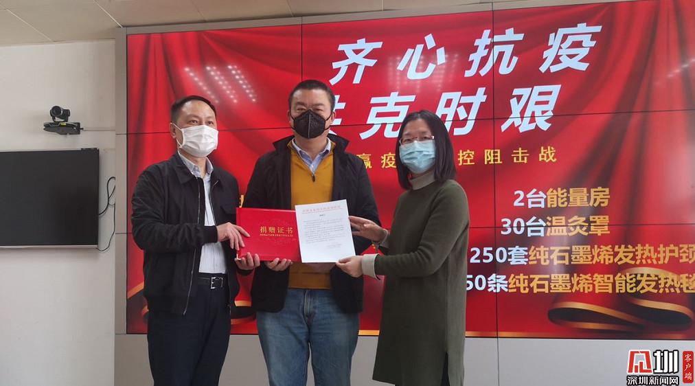 2月7日,烯旺科技向龍崗中心醫(yī)院捐贈(zèng)了1臺(tái)石墨烯殺菌消毒康復(fù)房,1臺(tái)溫炙罩,10個(gè)石墨烯發(fā)熱毯、10個(gè)石墨烯護(hù)頸,價(jià)值10萬元。