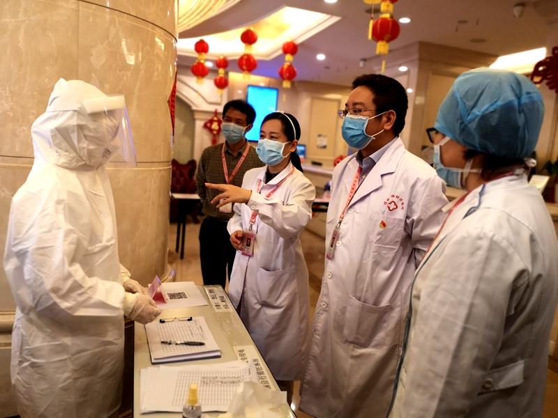 在街道辦、醫(yī)院、酒店、派出所等各部門的積極配合和協(xié)調(diào)下,僅僅41小時(shí),一間停業(yè)的酒店順利啟動(dòng)成為全區(qū)最大的健康驛站。為了更好的起到內(nèi)防擴(kuò)散,外防輸入的作用,2月26日上午,福田區(qū)婦幼院、福田街道、福強(qiáng)派出所相關(guān)負(fù)責(zé)人帶隊(duì)到驛站模擬演練,進(jìn)一步規(guī)范優(yōu)化流程管理。