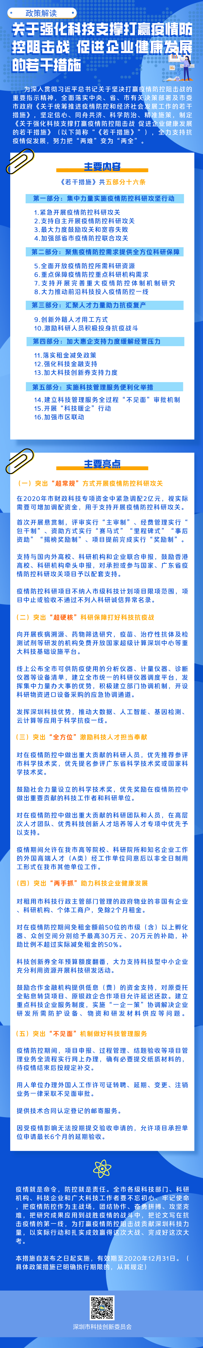 見圳客戶端·深圳新聞網(wǎng)2020年3月3日訊(見圳客戶端、深圳新聞網(wǎng)記者 陳婕)為深入貫徹習(xí)近平總書記關(guān)于堅決打贏疫情防控阻擊戰(zhàn)的重要指示精神,深圳市科技創(chuàng)新委員會制定《關(guān)于強化科技支撐打贏疫情防控阻擊戰(zhàn)促進企業(yè)健康發(fā)展的若干措施》(以下簡稱“《若干措施》”),《若干措施》共五部分十六條,其中,突出“超常規(guī)”方式,在2020年財政科技專項資金中緊急調(diào)配2億元,視實際需要可增加調(diào)配資金,用于支持開展疫情防控科研攻關(guān),努力把“兩難”變?yōu)椤皟扇薄?/p>