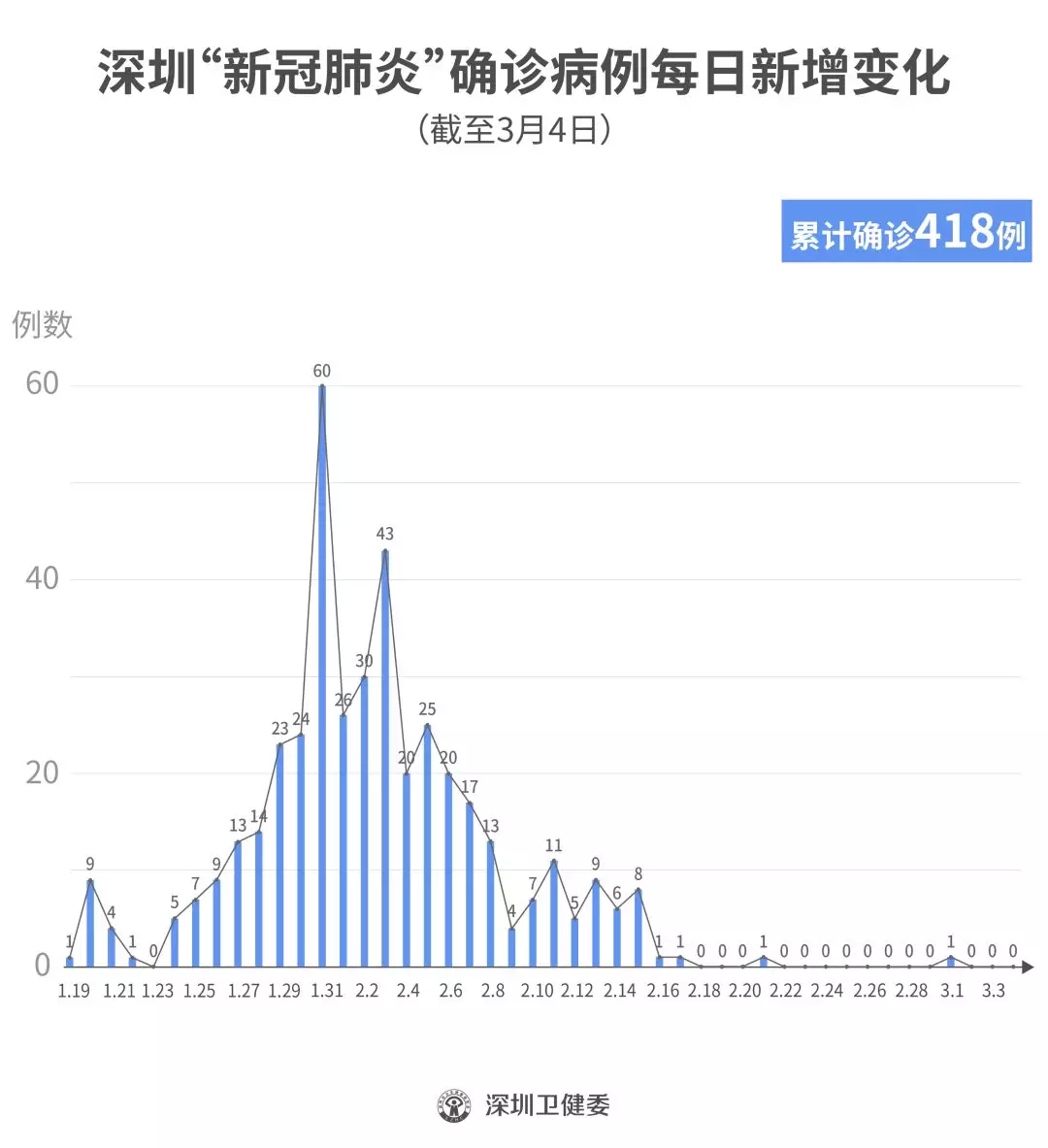見(jiàn)圳客戶端·深圳新聞網(wǎng)2020年3月5日訊 截至3月4日24時(shí),深圳累計(jì)報(bào)告“新冠肺炎”確診病例418例。3月4日當(dāng)天全市無(wú)新增確診病例,當(dāng)天出院病例9例(從2月26日起不再公布出院個(gè)案)。