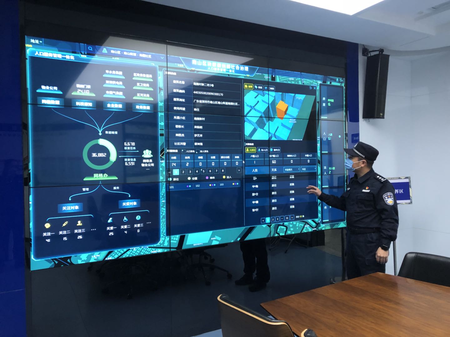 南山區(qū)南山街道南園社區(qū)黨委兼職副書記、南園警務室警長蔡坤海表示,在應用“塊數(shù)據(jù)”之前,社區(qū)網(wǎng)格員、社區(qū)工作人員、社康醫(yī)生可能會分別上門走訪,訪問的內(nèi)容也有所重復,群眾常常因為頻繁接待社區(qū)人員而感到困惑。應用“塊數(shù)據(jù)”之后,各個單位間的數(shù)據(jù)打通,工作流程實現(xiàn)再造,單位間的協(xié)作更加高效。