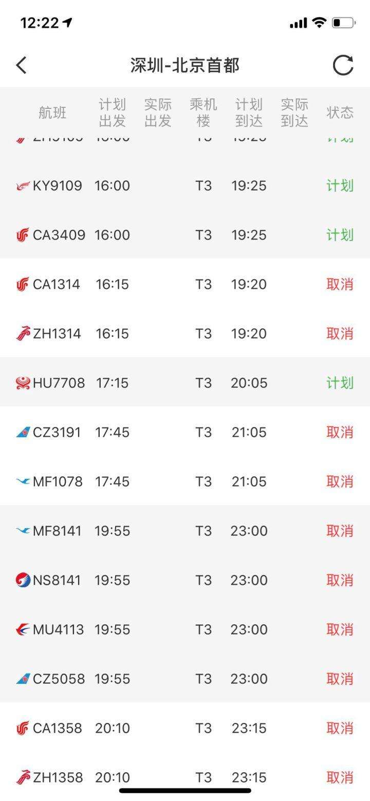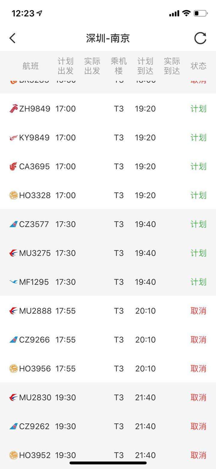 不僅是深圳飛往杭州的CA1736航班,記者發(fā)現(xiàn),今晚深圳飛往北京、上海、南京等國內(nèi)多個城市的航班,均顯示為取消狀態(tài)。而原計劃17:45由深圳飛往杭州的CA1734和原計劃22:05由深圳飛往杭州的MF8384航班,均顯示為取消狀態(tài)。
