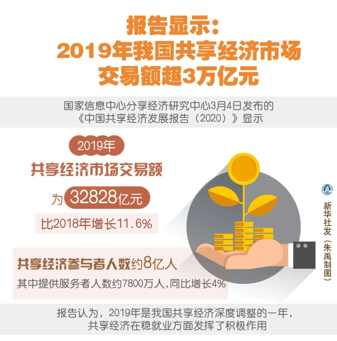 ⑤2019年我國共享經(jīng)濟市場交易額為32828億元,比上年增長11.6%。