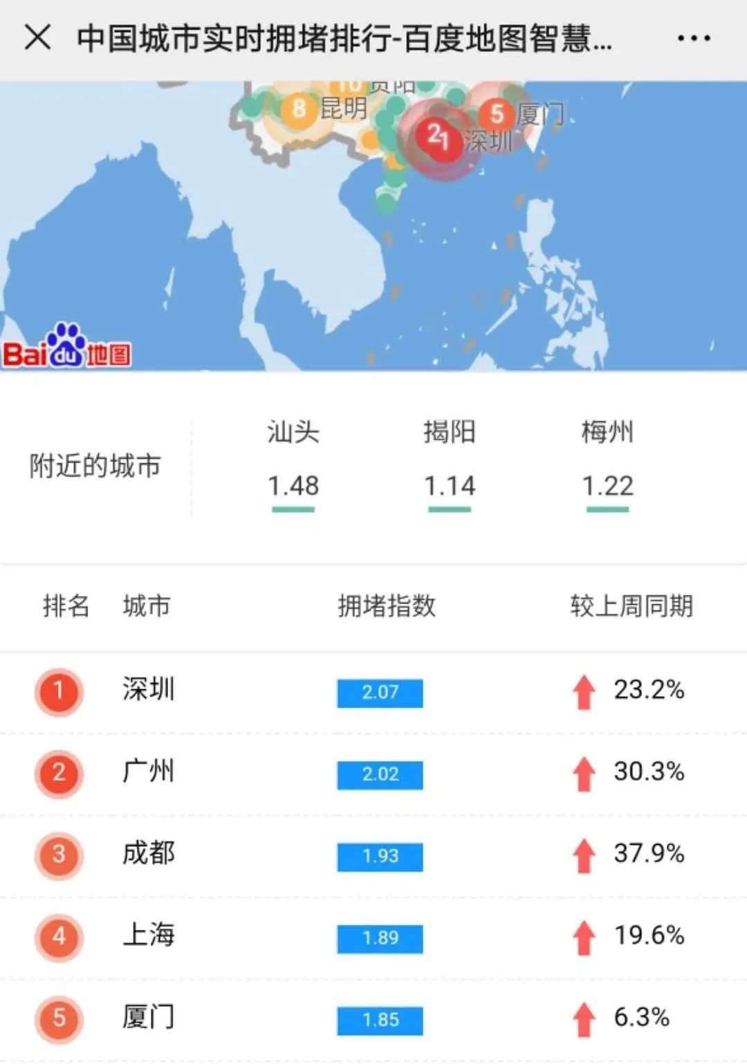 3月2日晚上,深圳擁堵指數(shù)居全國(guó)榜首