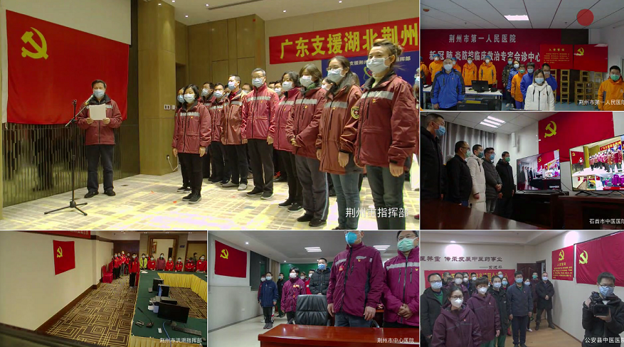 進入駐地酒店前,深圳醫(yī)療隊隊員列隊用酒精進行鞋底消毒