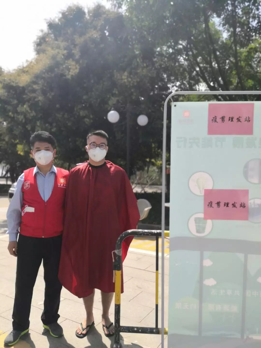 公司本部,1303會議室,臨時理發(fā)室“生意”也火爆極了。公司工會邀請了兩名專業(yè)的Tony老師,為近90名員工提供免費(fèi)的理發(fā)服務(wù)。為減少人員聚集,理發(fā)采取提前線上預(yù)約,分時段進(jìn)行,確保安全的同時,盡可能讓有需要的同事都能理上發(fā)。鋪上一次性地毯,坐上椅子,圍上一次性“斗篷”,Tony老師一頓熟練的剪發(fā)操作后,再用吹風(fēng)機(jī)整好造型,就完成了理發(fā)的全過程。臨時理發(fā)師的搭建,有效解決了員工生活上的困難,幫助他們以良好的精神面貌投入工作來。