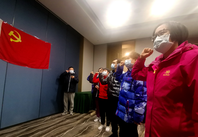 見圳客戶端·深圳新聞網(wǎng)2020年3月9日訊 3月9日晚7時30分,廣東省支援荊州醫(yī)療隊組織新黨員入黨宣誓活動。深圳邊檢總站醫(yī)療隊和北大深圳醫(yī)院醫(yī)療隊分別在荊州市第一人民醫(yī)院分會場和監(jiān)利縣廣東醫(yī)療隊駐地酒店分會場組織黨員參加了宣誓活動。經(jīng)廣東省支援荊州醫(yī)療隊臨時黨委批準,來自深圳邊檢總站醫(yī)院醫(yī)療隊的護士許梅與來自北大深圳醫(yī)院的護士曹慧敏、趙晨曦作為新黨員火線入黨。