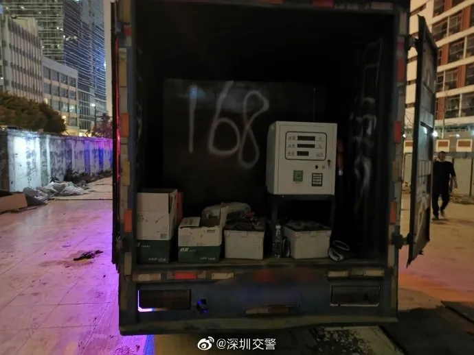 深圳交警到達(dá)現(xiàn)場(chǎng)時(shí),司機(jī)與相關(guān)人員都不在場(chǎng),而附近居民向現(xiàn)場(chǎng)民警透露,這輛車的車廂內(nèi)可“大有乾坤”,出于安全考慮,交警打開該車車廂。
