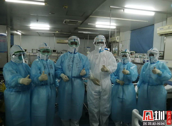 深圳邊檢總站赴鄂醫(yī)療隊(duì)隊(duì)員在ICU內(nèi)合影