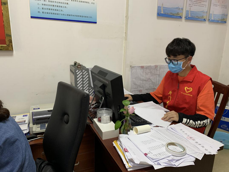 深圳信息學院19級劉泓濤在社區(qū)參加志愿服務(wù)。