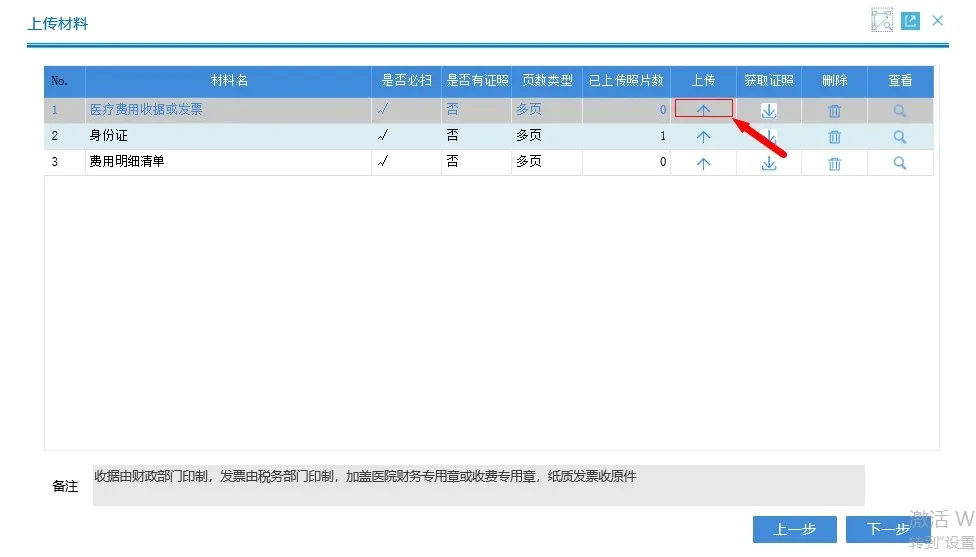 填寫信息上傳材料,如醫(yī)療費(fèi)用收據(jù)或發(fā)票、身份證、費(fèi)用明細(xì)清單等;