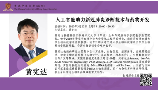 黃憲達(dá)教授現(xiàn)擔(dān)任香港中文大學(xué)(深圳)生命與健康科學(xué)學(xué)院教學(xué)助理院長、瓦謝爾計(jì)算生物研究院執(zhí)行院長。他于2003年畢業(yè)于臺(tái)灣中央大學(xué)資訊工程學(xué)系博士,此前為臺(tái)灣交通大學(xué)生物科技學(xué)系講座教授。他曾任職臺(tái)灣交通大學(xué)生物科技學(xué)系主任及生物科技學(xué)院副院長、臺(tái)灣生物資訊學(xué)會(huì)理事長等。
