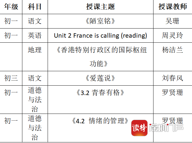 深圳實驗學校中學部課程表