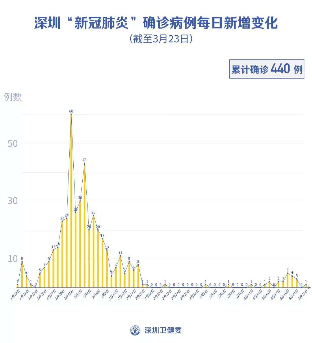 截至3月23日24時,深圳累計報告“新冠肺炎”病例440例。3月23日當(dāng)天新增1例,出院1例。