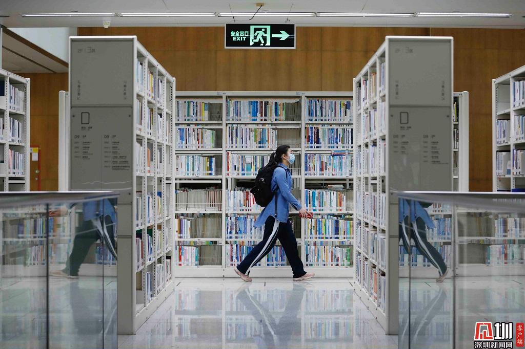 深圳圖書(shū)館圖書(shū)借閱區(qū),一位讀者經(jīng)過(guò)。