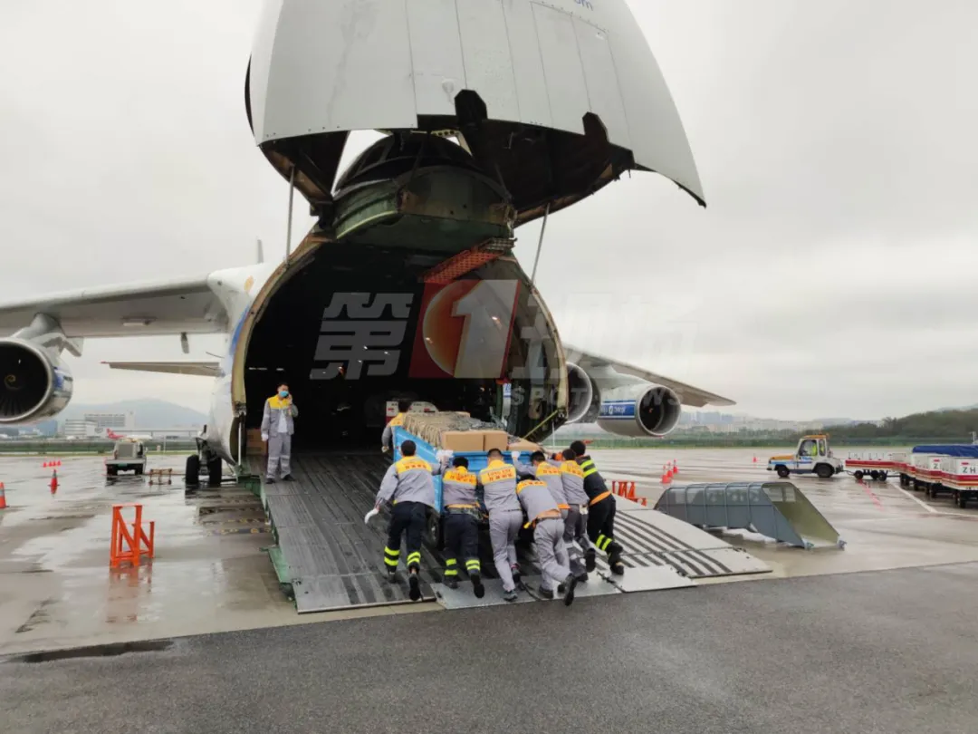 飛抵深圳機(jī)場(chǎng)運(yùn)輸防疫物資。
