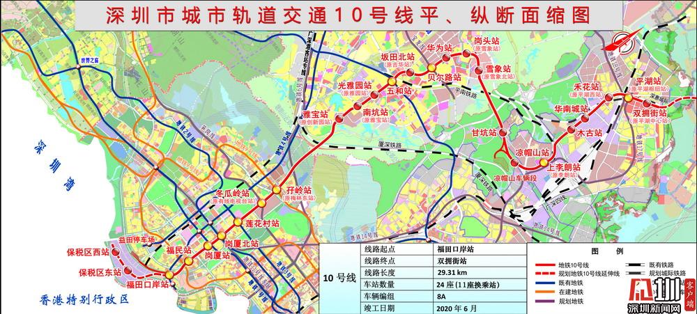 地鐵10號(hào)線起于福田口岸站,途經(jīng)福田區(qū)、龍崗區(qū),止于雙擁街站,線路全長(zhǎng)29.31公里,共設(shè)24座車站,全部為地下車站。地鐵10號(hào)線兼具干線和局域線功能,是深圳市首條南北向采用8A編組的線路,并預(yù)留“南聯(lián)北拓”條件,成為又一條“南北動(dòng)脈”,建成后,福田口岸到平湖僅用45分鐘即可到達(dá),將大大緩解福田中心區(qū)至坂田段的交通壓力。