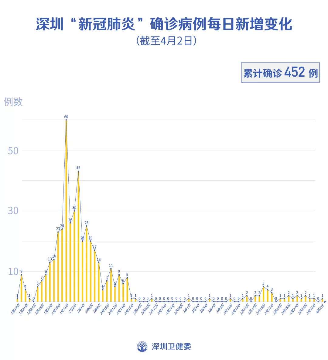 截至4月2日24時,深圳累計報告新冠肺炎病例452例。4月2日當天新增1例境外輸入病例。