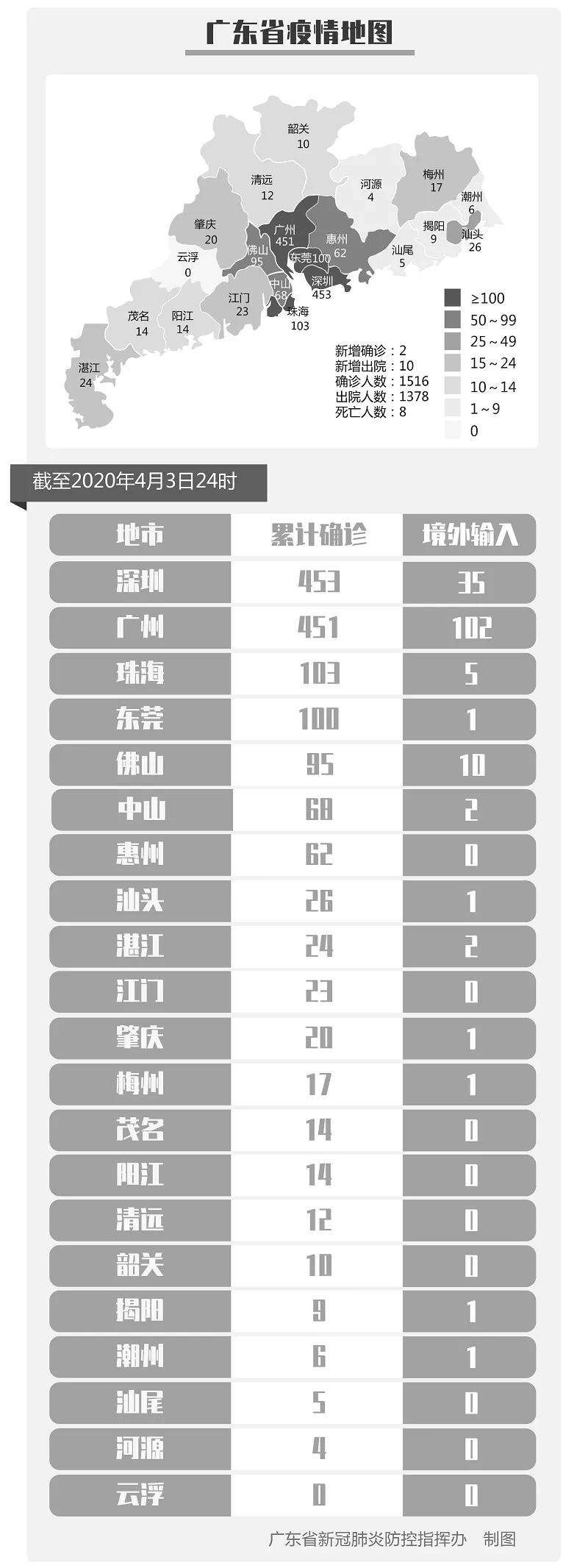 截至4月3日24時,深圳累計報告新冠肺炎病例453例。4月3日當(dāng)天新增1例境外輸入病例。