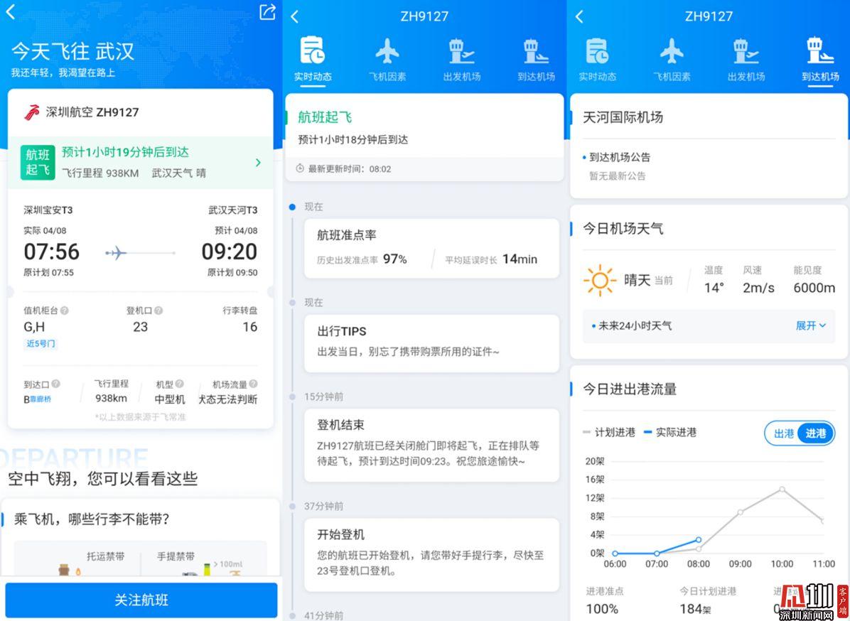 見圳客戶端·深圳新聞網(wǎng)2020年4月8日訊(見圳客戶端、深圳新聞網(wǎng)記者 張喆 陳致遠 鐘鴻冰)4月8日7時55分,深圳航空ZH9127航班從深圳寶安國際機場起飛。這是自武漢市解除離漢離鄂通道管控措施后,從深圳機場飛往武漢的首架客運航班。