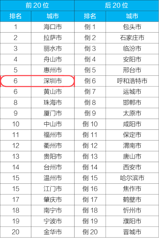 3月,168個重點城市中淄博、棗莊、石家莊市等城市空氣質量相對較差(從倒數第1名至倒數第20名);拉薩、???、舟山市等城市空氣質量相對較好,深圳排名第7。