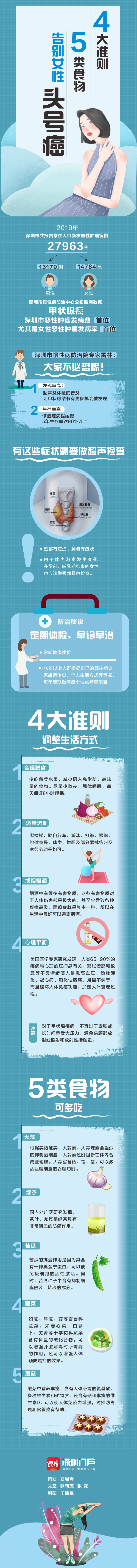 深圳市慢性病防治中心公布的最新腫瘤監(jiān)測數(shù)據(jù)顯示,2019年,深圳市共報(bào)告常住人口新發(fā)惡性腫瘤病例27963例,甲狀腺癌首次新晉女性“頭號癌”。