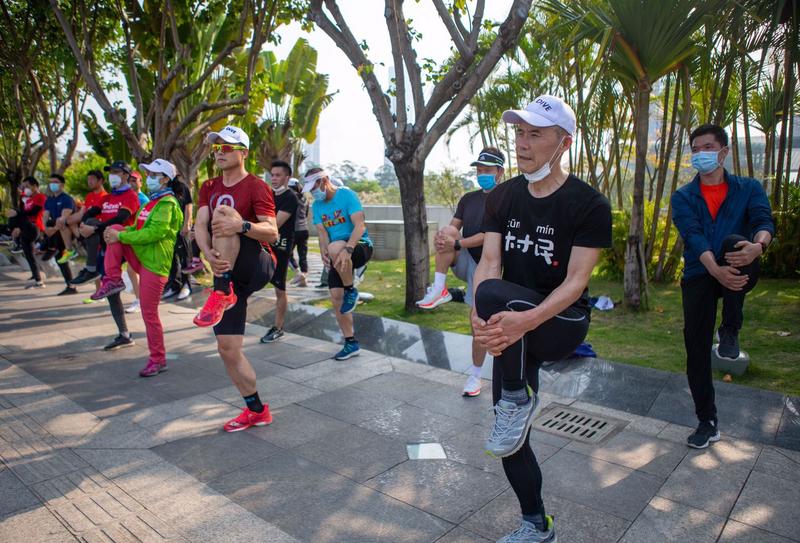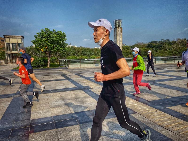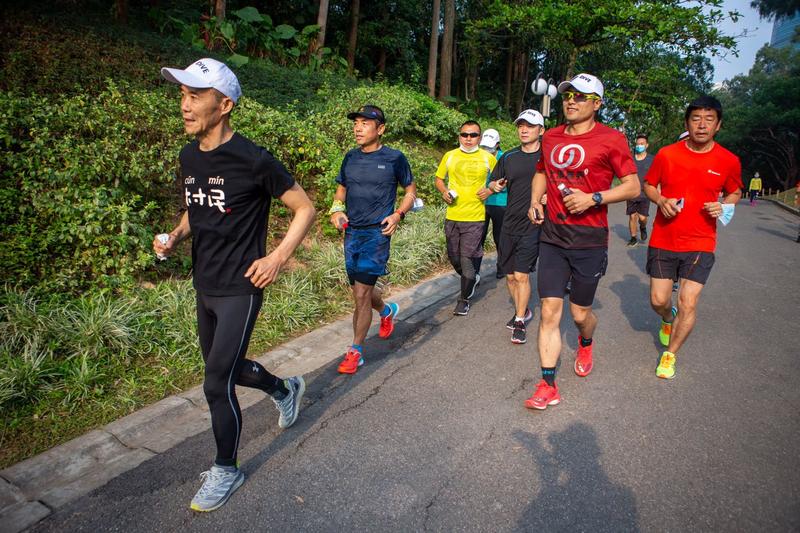 今天的登山活動,其實從蓮花山西門的跑步開始的。不到十分鐘,王石等就達到了蓮花山頂,隨后從山頂下山,跑步3.5公里到達蓮花山與市民中心的連廊平臺,在此完成拉伸后,整個登山和跑步活動完美結(jié)束。