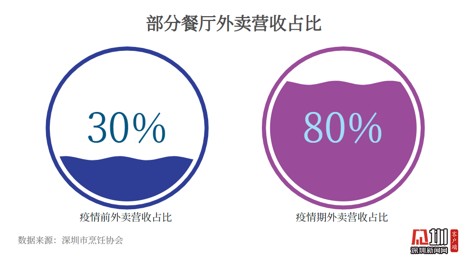 大秦小宴、云海肴……深圳餐飲行業(yè)靠外賣實現(xiàn)“突圍”。根據(jù)深圳市烹飪協(xié)會的數(shù)據(jù),在疫情期間,部分餐飲店的外賣營收額占比增長了200%,一些過去不提供外賣服務(wù)的商家,如傳統(tǒng)大酒樓、米其林餐廳、五星級酒店等,為了創(chuàng)收,也加入到了外賣平臺?!耙郧巴赓u營收能占總收入30%就算不錯的,疫情期部份餐廳已經(jīng)占到收入的80%甚至90%?!鄙钲谑信腼儏f(xié)會常務(wù)副會長劉永忠介紹。