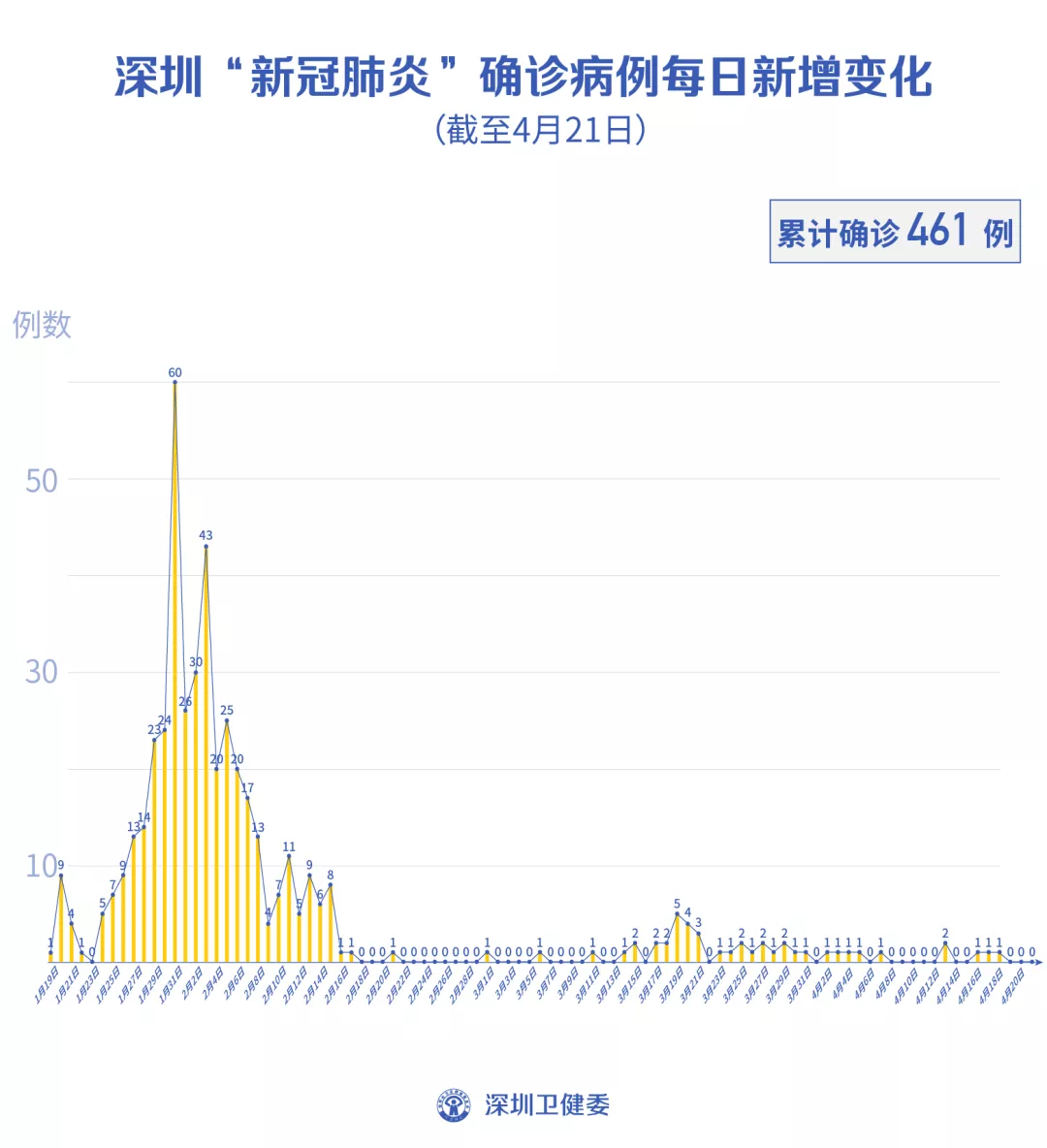 ??截至4月21日24時(shí),深圳累計(jì)報(bào)告新冠肺炎病例461例。4月21日當(dāng)天新增出院6例。