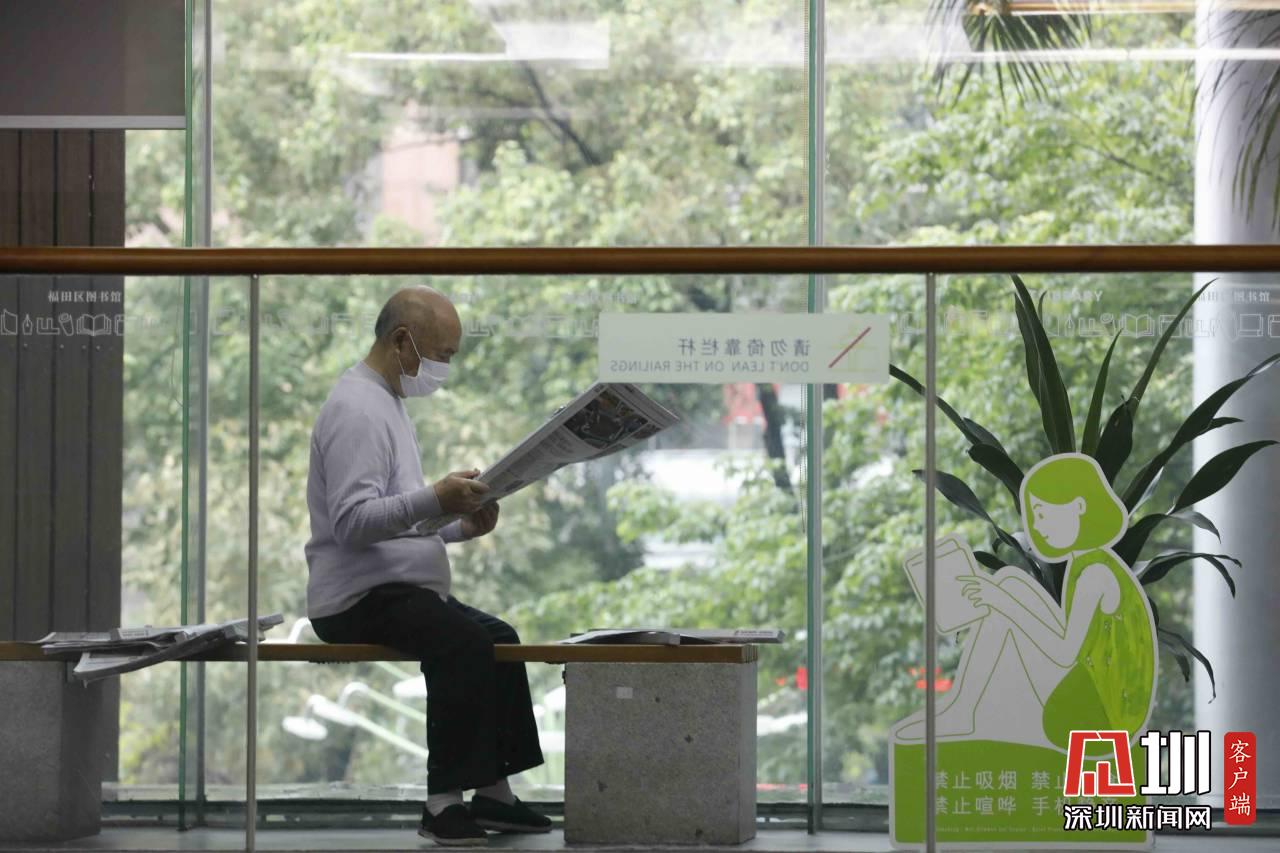 福田圖書館內,一位市民正在閱讀報紙。
