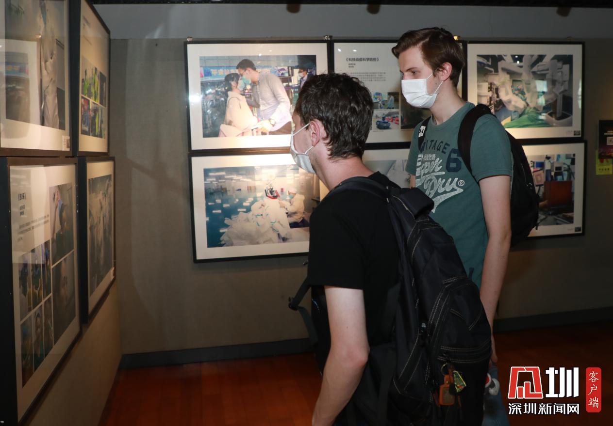 在優(yōu)秀攝影作品展中參觀的外國(guó)友人