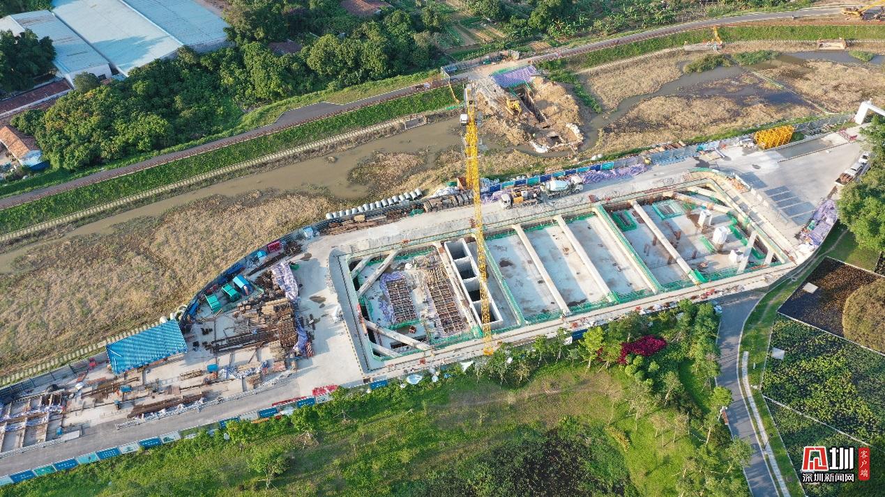 新陂頭干流調(diào)蓄池施工現(xiàn)場(chǎng)。為追趕進(jìn)度,搶抓工期,光明 EPC消黑項(xiàng)目部爭(zhēng)分奪秒,全面向著完工節(jié)點(diǎn)出發(fā)。