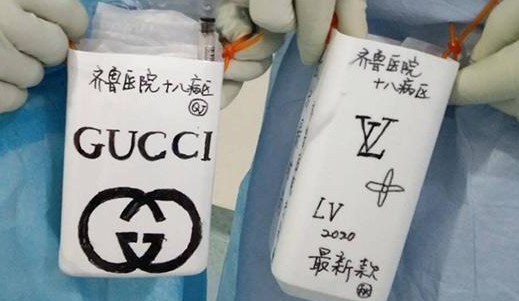 前段時間,一批新款獨家限量版名牌桶包亮相武漢大學(xué)人民醫(yī)院。因防護(hù)服沒有口袋,醫(yī)護(hù)人員們便突發(fā)奇想用塑料空瓶、事先畫好的裝飾圖、膠水和方便斜挎的繩子做出了桶包↓↓