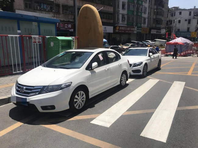 黃方格、人行道、公交站臺(tái)等區(qū)域禁止停車。
