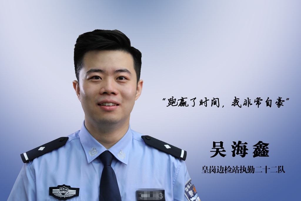 民警吳海鑫:空曠口岸的每一寸土地,每日步巡的他都用雙腳丈量,他記不清多少次引導(dǎo)救護車進入皇崗口岸,搭起深港“生命線”?!芭苴A了時間,我非常自豪?!?/p>