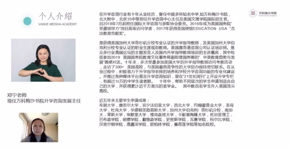萬科梅沙書院2020海外升學(xué)經(jīng)驗(yàn)分享會線上亮相