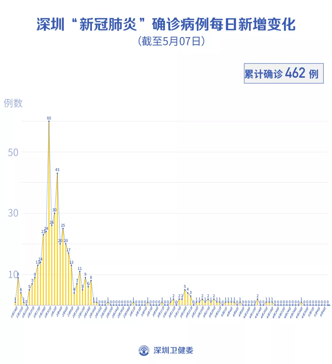 截至5月7日24時(shí),深圳累計(jì)報(bào)告新冠肺炎病例462例。在院治療僅有1例。