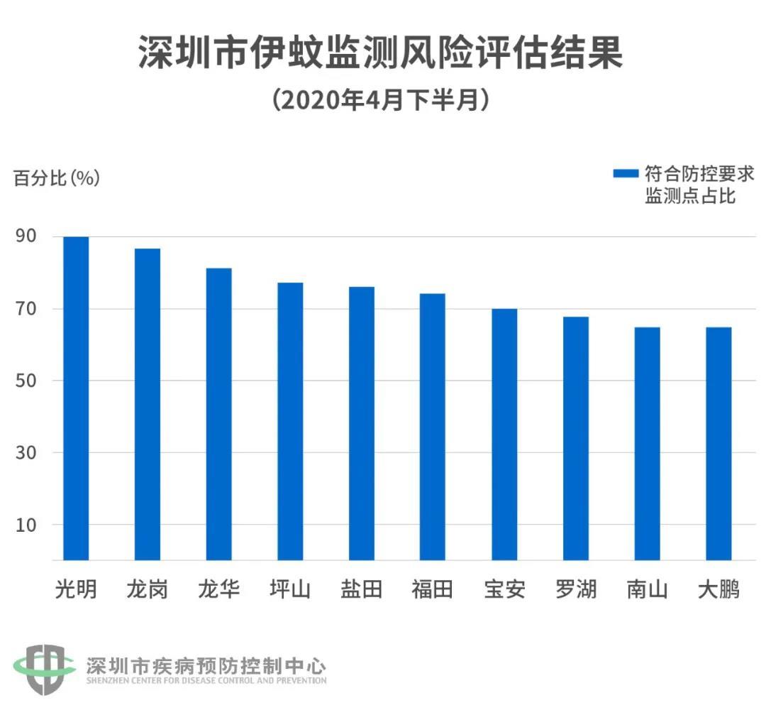 這張圖是各區(qū)蚊子監(jiān)測的“成績表”。分?jǐn)?shù)越高,說明合格的監(jiān)測點(diǎn)越多,“安全系數(shù)”越高。