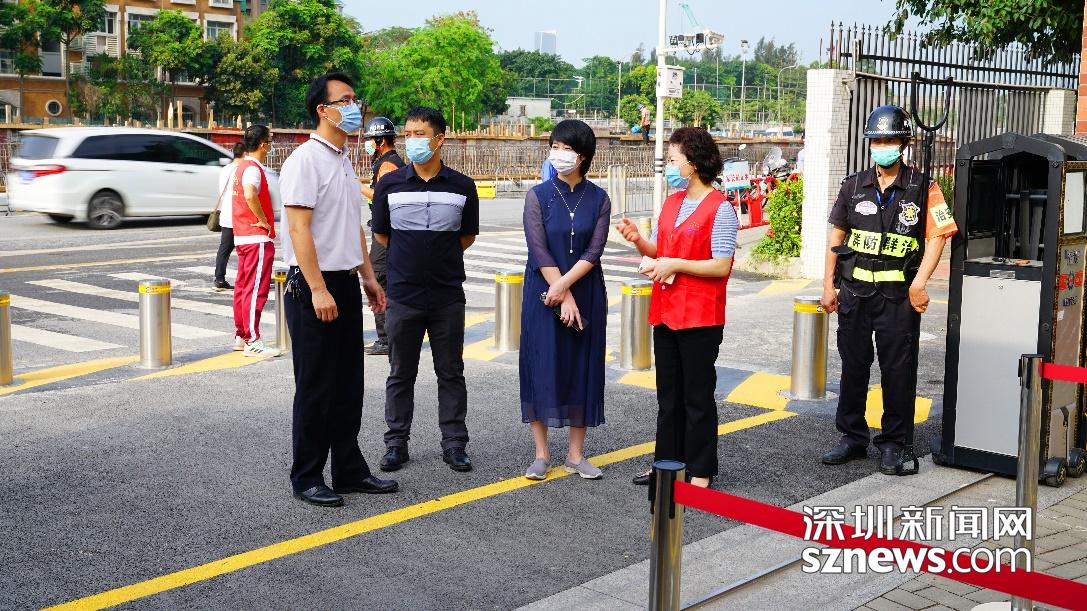 南山區(qū)委教育工委書記馬穎麗來(lái)到陽(yáng)光小學(xué),了解學(xué)校的復(fù)學(xué)情況。在校領(lǐng)導(dǎo)的帶領(lǐng)下,馬書記參觀了食堂,并去到學(xué)校4-6年級(jí)的每一間教室,重點(diǎn)關(guān)注了孩子們?cè)诩疫M(jìn)行“空中課堂”的學(xué)習(xí)情況、復(fù)學(xué)第一天的心情感受、這段時(shí)間的心理狀態(tài)等;細(xì)微之處,馬書記還關(guān)注到了孩子的握筆姿勢(shì)、上課坐姿、書包重量等。在巡視過(guò)程中,馬書記對(duì)陽(yáng)光小學(xué)的防疫環(huán)境創(chuàng)設(shè)、教室的良好通風(fēng)配置、走廊的定崗教師安排等細(xì)節(jié),也給予了肯定。