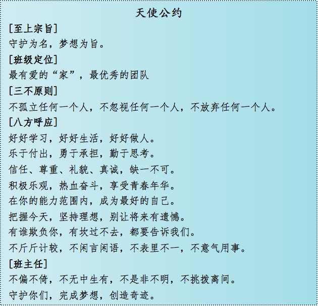 詹老師所帶班級嚴(yán)格遵守著“公約精神”,創(chuàng)造了一個個驚喜:2015級14班在藝術(shù)季班級文化設(shè)計中是全校唯一全員參與的班級;2016級8班在跳繩比賽中從練習(xí)時的倒數(shù)第一到復(fù)賽逆襲闖進(jìn)決賽獲得一等獎;2017級9班在疫情網(wǎng)課期間堅持每科作業(yè)“今日事今日畢”,無一人掉隊。