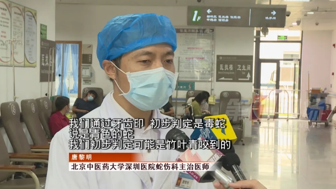 北京中醫(yī)藥大學(xué)深圳醫(yī)院蛇傷科主治醫(yī)師 唐黎明:一般被蛇咬之后,以腫脹為主,就是火毒型的,咬到的地方腫的很厲害,被咬后首先要近心端結(jié)扎,如果是毒蛇咬傷的話,近心端結(jié)扎,然后盡量不要走動跑動,立刻停下來,然后立馬打120或用車送到醫(yī)院救治。